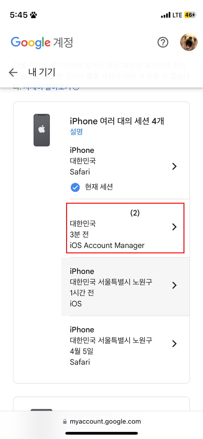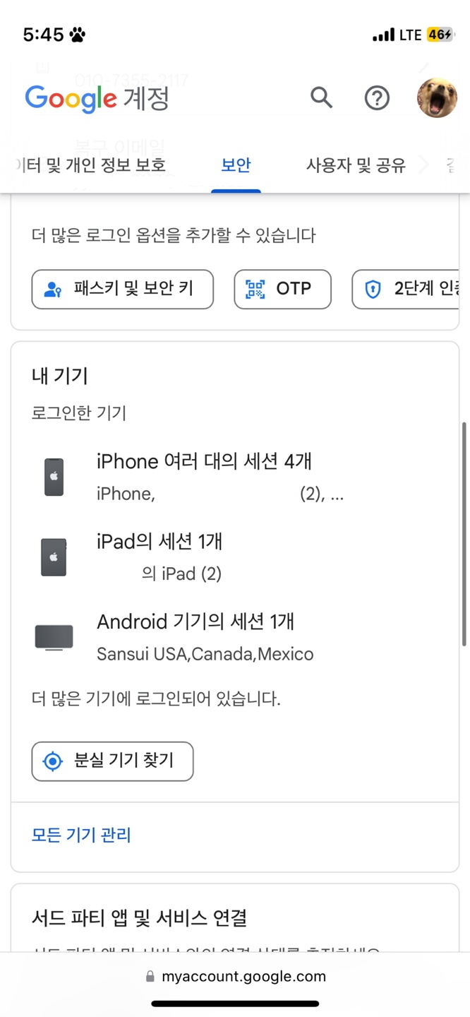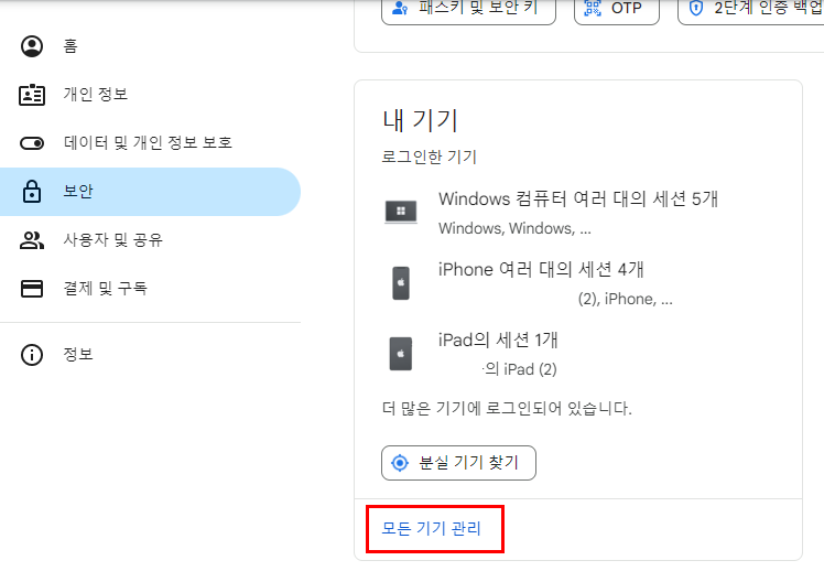 4) 내 구글 계정으로 접속되어 있는 모든 기기를 확인할 수 있습니다.