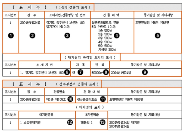 ① 표시번호: 등기한 순서를 숫자로 표시합니다.