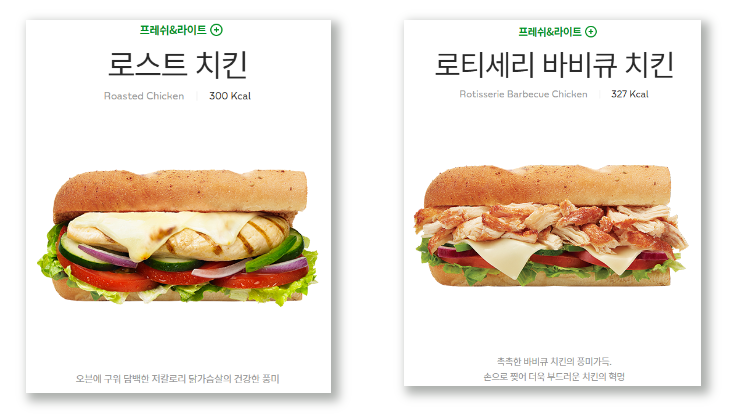 • 로티세리 바비큐 치킨 (327kcal, 단백질 29.1g)