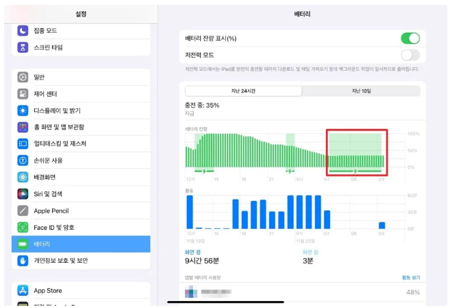 충전기를 꽂고 잠에 들었지만, 하단의 이미지처럼 충전에 제한이 걸린 것 처럼 충전이 되지 않고 유지만 되어있다면 소프트웨어 오류로 인해 충전이 되지 않을 확률이 높습니다.