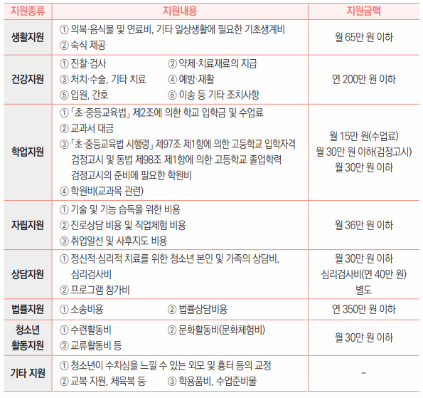 • 다른 제도로 지원받지 못하는 9세 이상 24세 이하 위기 청소년
