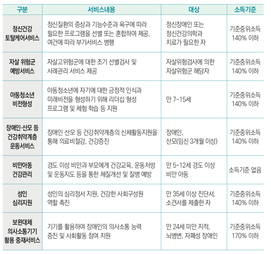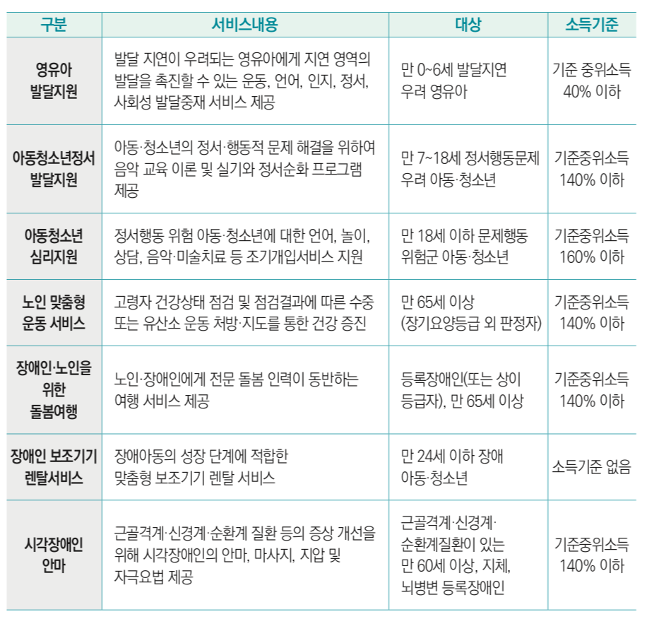 * 영유아 발달 지원 서비스, 아동·청소년 심리지원 서비스, 장애인보조기기 렌탈서비스, 정신건강