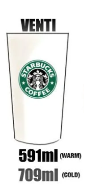 벤티는 이탈리아어로 20이라는 의미를 가진 단어로, 20oz를 뜻합니다. 벤티 사이즈는 501ml로, Tall 사이즈와 비교하여 약 2배에 달하는 크기이며 벤티 사이즈로 음료를 즐겨 드신다면 음료를 매우 좋아하는 사람일 확률이 높습니다.
